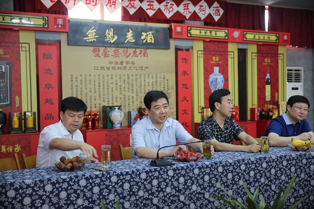 6月24日上午,無錫市市委副書記、市長汪泉,市政府秘書長許立新、惠山區區長李秋峰以及江大生工學院許正宏院長等領導調研玉祁酒業,汪市長強調,玉祁酒業作為本地的中華老字號企業,要依靠獨有的地域優勢,做大做強。江南大學生物工程學院的發酵專業作為全國知名專業,一定要發揮其技術優勢,要與玉祁酒業深度合作,同時各級部門要給予支持,盡快打造出無錫乃至江南一款高品白酒。
